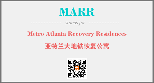 上述内容是“Metro Atlanta Recovery Residences”作为“MARR”的缩写,解释为“亚特兰大地铁恢复公寓”时的信息,以及英文缩略词MARR所代表的英文单词,其对应的中文拼音、详细解释以及在英文中的流行度和相关分类、应用领域及应用示例等。