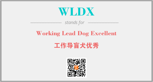 上述内容是“Working Lead Dog Excellent”作为“WLDX”的缩写,解释为“工作导盲犬优秀”时的信息,以及英文缩略词WLDX所代表的英文单词,其对应的中文拼音、详细解释以及在英文中的流行度和相关分类、应用领域及应用示例等。