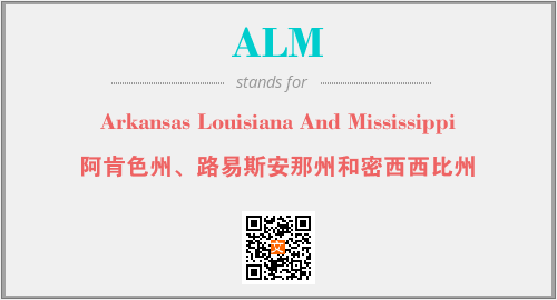 上述内容是“Arkansas Louisiana And Mississippi”作为“ALM”的缩写,解释为“阿肯色州、路易斯安那州和密西西比州”时的信息,以及英文缩略词ALM所代表的英文单词,其对应的中文拼音、详细解释以及在英文中的流行度和相关分类、应用领域及应用示例等。
