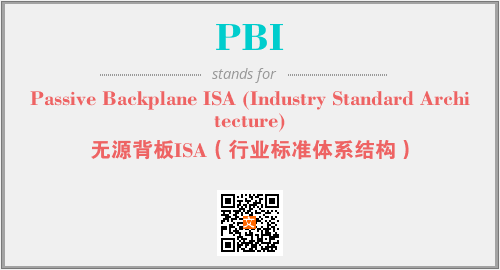 上述内容是“Passive Backplane ISA (Industry Standard Architecture)”作为“PBI”的缩写,解释为“无源背板ISA(行业标准体系结构)”时的信息,以及英文缩略词PBI所代表的英文单词,其对应的中文拼音、详细解释以及在英文中的流行度和相关分类、应用领域及应用示例等。