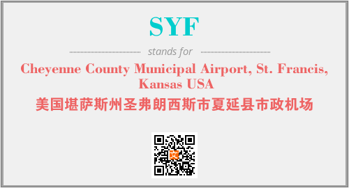 上述内容是“Cheyenne County Municipal Airport, St. Francis, Kansas USA”作为“SYF”的缩写,解释为“美国堪萨斯州圣弗朗西斯市夏延县市政机场”时的信息,以及英文缩略词SYF所代表的英文单词,其对应的中文拼音、详细解释以及在英文中的流行度和相关分类、应用领域及应用示例等。