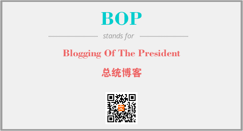 上述内容是“Blogging Of The President”作为“BOP”的缩写,解释为“总统博客”时的信息,以及英文缩略词BOP所代表的英文单词,其对应的中文拼音、详细解释以及在英文中的流行度和相关分类、应用领域及应用示例等。