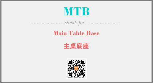 上述内容是“Main Table Base”作为“MTB”的缩写,解释为“主桌底座”时的信息,以及英文缩略词MTB所代表的英文单词,其对应的中文拼音、详细解释以及在英文中的流行度和相关分类、应用领域及应用示例等。
