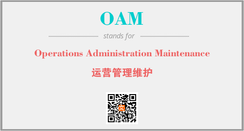 英文缩略词“OAM”经常作为“Operations Administration Maintenance”的英文缩写来使用,中文表示:“运营管理维护”。本文将详细介绍英文缩写词OAM所代表英文单词,其对应的中文拼音、详细解释以及在英语中的流行度。此外,还有关于缩略词OAM的分类、应用领域及相关应用示例等。