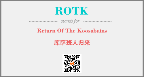 上述内容是“Return Of The Koosabains”作为“ROTK”的缩写,解释为“库萨班人归来”时的信息,以及英文缩略词ROTK所代表的英文单词,其对应的中文拼音、详细解释以及在英文中的流行度和相关分类、应用领域及应用示例等。