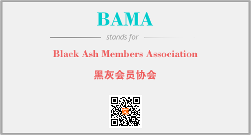 上述内容是“Black Ash Members Association”作为“BAMA”的缩写,解释为“黑灰会员协会”时的信息,以及英文缩略词BAMA所代表的英文单词,其对应的中文拼音、详细解释以及在英文中的流行度和相关分类、应用领域及应用示例等。