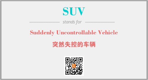 以上为Suddenly Uncontrollable Vehicle英文缩略词SUV的中文解释,以及该英文缩写在英语的流行度、分类和应用领域方面的信息。