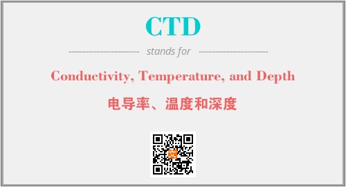 上述内容是“Conductivity, Temperature, and Depth”作为“CTD”的缩写,解释为“电导率、温度和深度”时的信息,以及英文缩略词CTD所代表的英文单词,其对应的中文拼音、详细解释以及在英文中的流行度和相关分类、应用领域及应用示例等。