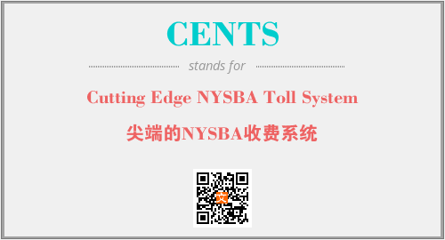 上述内容是“Cutting Edge NYSBA Toll System”作为“CENTS”的缩写,解释为“尖端的NYSBA收费系统”时的信息,以及英文缩略词CENTS所代表的英文单词,其对应的中文拼音、详细解释以及在英文中的流行度和相关分类、应用领域及应用示例等。