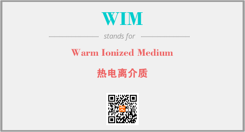 上述内容是“Warm Ionized Medium”作为“WIM”的缩写,解释为“热电离介质”时的信息,以及英文缩略词WIM所代表的英文单词,其对应的中文拼音、详细解释以及在英文中的流行度和相关分类、应用领域及应用示例等。