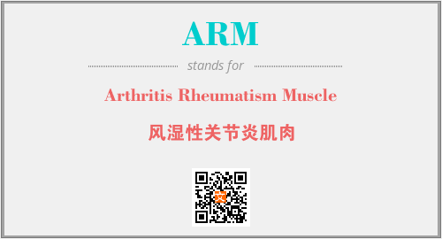 上述内容是“Arthritis Rheumatism Muscle”作为“ARM”的缩写,解释为“风湿性关节炎肌肉”时的信息,以及英文缩略词ARM所代表的英文单词,其对应的中文拼音、详细解释以及在英文中的流行度和相关分类、应用领域及应用示例等。
