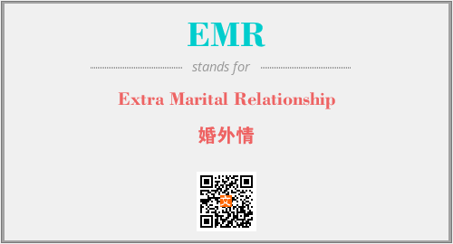 上述内容是“Extra Marital Relationship”作为“EMR”的缩写,解释为“婚外情”时的信息,以及英文缩略词EMR所代表的英文单词,其对应的中文拼音、详细解释以及在英文中的流行度和相关分类、应用领域及应用示例等。