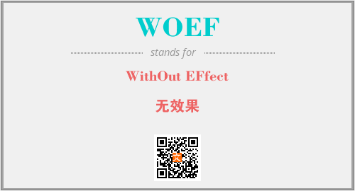 上述内容是“WithOut EFfect”作为“WOEF”的缩写,解释为“无效果”时的信息,以及英文缩略词WOEF所代表的英文单词,其对应的中文拼音、详细解释以及在英文中的流行度和相关分类、应用领域及应用示例等。