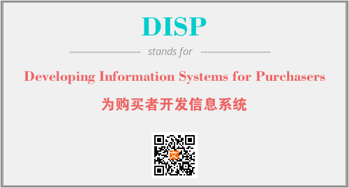 以上为Developing Information Systems for Purchasers英文缩略词DISP的中文解释,以及该英文缩写在英语的流行度、分类和应用领域方面的信息。