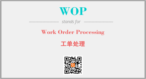 英文缩略词“WOP”经常作为“Work Order Processing”的英文缩写来使用,中文表示:“工单处理”。本文将详细介绍英文缩写词WOP所代表英文单词,其对应的中文拼音、详细解释以及在英语中的流行度。此外,还有关于缩略词WOP的分类、应用领域及相关应用示例等。
