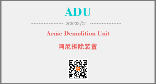 英文缩略词“ADU”经常作为“Arnie Demolition Unit”的英文缩写来使用,中文表示:“阿尼拆除装置”。本文将详细介绍英文缩写词ADU所代表英文单词,其对应的中文拼音、详细解释以及在英语中的流行度。此外,还有关于缩略词ADU的分类、应用领域及相关应用示例等。