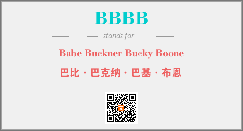 英文缩略词“BBBB”经常作为“Babe Buckner Bucky Boone”的英文缩写来使用,中文表示:“巴比·巴克纳·巴基·布恩”。本文将详细介绍英文缩写词BBBB所代表英文单词,其对应的中文拼音、详细解释以及在英语中的流行度。此外,还有关于缩略词BBBB的分类、应用领域及相关应用示例等。