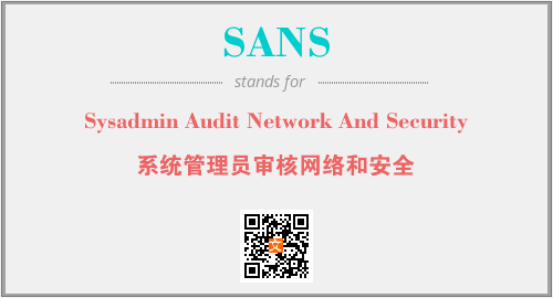 上述内容是“Sysadmin Audit Network And Security”作为“SANS”的缩写,解释为“系统管理员审核网络和安全”时的信息,以及英文缩略词SANS所代表的英文单词,其对应的中文拼音、详细解释以及在英文中的流行度和相关分类、应用领域及应用示例等。