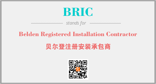 上述内容是“Belden Registered Installation Contractor”作为“BRIC”的缩写,解释为“贝尔登注册安装承包商”时的信息,以及英文缩略词BRIC所代表的英文单词,其对应的中文拼音、详细解释以及在英文中的流行度和相关分类、应用领域及应用示例等。