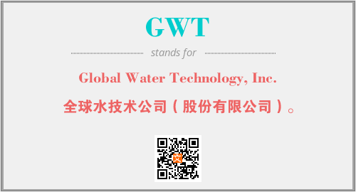 上述内容是“Global Water Technology, Inc.”作为“GWT”的缩写,解释为“全球水技术公司(股份有限公司)。”时的信息,以及英文缩略词GWT所代表的英文单词,其对应的中文拼音、详细解释以及在英文中的流行度和相关分类、应用领域及应用示例等。