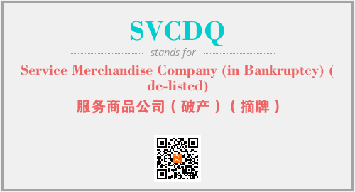 上述内容是“Service Merchandise Company (in Bankruptcy) (de-listed)”作为“SVCDQ”的缩写,解释为“服务商品公司(破产)(摘牌)”时的信息,以及英文缩略词SVCDQ所代表的英文单词,其对应的中文拼音、详细解释以及在英文中的流行度和相关分类、应用领域及应用示例等。