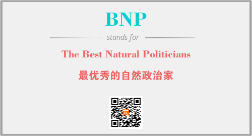以上为The Best Natural Politicians英文缩略词BNP的中文解释,以及该英文缩写在英语的流行度、分类和应用领域方面的信息。