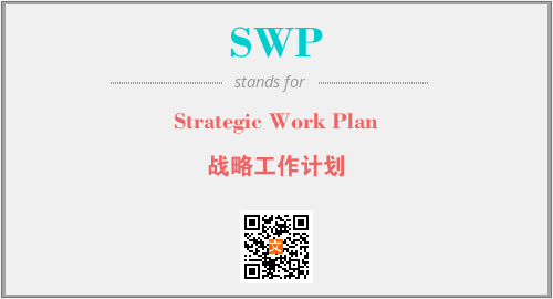 英文缩略词“SWP”经常作为“Strategic Work Plan”的英文缩写来使用,中文表示:“战略工作计划”。本文将详细介绍英文缩写词SWP所代表英文单词,其对应的中文拼音、详细解释以及在英语中的流行度。此外,还有关于缩略词SWP的分类、应用领域及相关应用示例等。