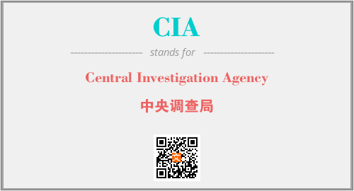 英文缩略词“CIA”经常作为“Central Investigation Agency”的英文缩写来使用,中文表示:“中央调查局”。本文将详细介绍英文缩写词CIA所代表英文单词,其对应的中文拼音、详细解释以及在英语中的流行度。此外,还有关于缩略词CIA的分类、应用领域及相关应用示例等。