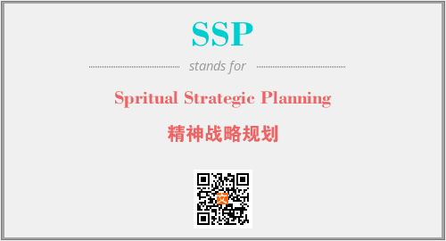 以上为Spritual Strategic Planning英文缩略词SSP的中文解释,以及该英文缩写在英语的流行度、分类和应用领域方面的信息。
