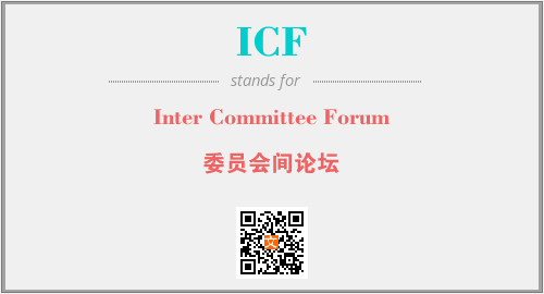 英文缩略词“ICF”经常作为“Inter Committee Forum”的英文缩写来使用,中文表示:“委员会间论坛”。本文将详细介绍英文缩写词ICF所代表英文单词,其对应的中文拼音、详细解释以及在英语中的流行度。此外,还有关于缩略词ICF的分类、应用领域及相关应用示例等。