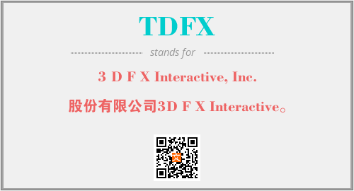 上述内容是“3 D F X Interactive, Inc.”作为“TDFX”的缩写,解释为“股份有限公司3D F X Interactive。”时的信息,以及英文缩略词TDFX所代表的英文单词,其对应的中文拼音、详细解释以及在英文中的流行度和相关分类、应用领域及应用示例等。