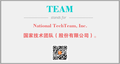 上述内容是“National TechTeam, Inc.”作为“TEAM”的缩写,解释为“国家技术团队(股份有限公司)。”时的信息,以及英文缩略词TEAM所代表的英文单词,其对应的中文拼音、详细解释以及在英文中的流行度和相关分类、应用领域及应用示例等。