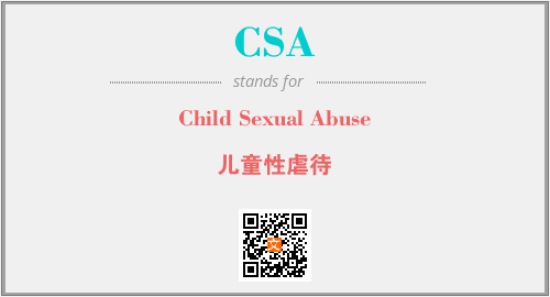 英文缩略词“CSA”经常作为“Child Sexual Abuse”的英文缩写来使用,中文表示:“儿童性虐待”。本文将详细介绍英文缩写词CSA所代表英文单词,其对应的中文拼音、详细解释以及在英语中的流行度。此外,还有关于缩略词CSA的分类、应用领域及相关应用示例等。