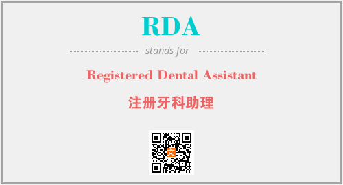 上述内容是“Registered Dental Assistant”作为“RDA”的缩写,解释为“注册牙科助理”时的信息,以及英文缩略词RDA所代表的英文单词,其对应的中文拼音、详细解释以及在英文中的流行度和相关分类、应用领域及应用示例等。