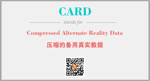 上述内容是“Compressed Alternate Reality Data”作为“CARD”的缩写,解释为“压缩的备用真实数据”时的信息,以及英文缩略词CARD所代表的英文单词,其对应的中文拼音、详细解释以及在英文中的流行度和相关分类、应用领域及应用示例等。