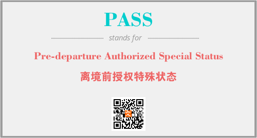 以上为Pre-departure Authorized Special Status英文缩略词PASS的中文解释,以及该英文缩写在英语的流行度、分类和应用领域方面的信息。