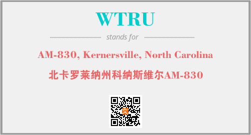 上述内容是“AM-830, Kernersville, North Carolina”作为“WTRU”的缩写,解释为“北卡罗莱纳州科纳斯维尔AM-830”时的信息,以及英文缩略词WTRU所代表的英文单词,其对应的中文拼音、详细解释以及在英文中的流行度和相关分类、应用领域及应用示例等。