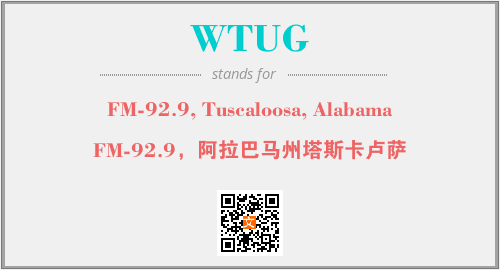 上述内容是“FM-92.9, Tuscaloosa, Alabama”作为“WTUG”的缩写,解释为“FM-92.9,阿拉巴马州塔斯卡卢萨”时的信息,以及英文缩略词WTUG所代表的英文单词,其对应的中文拼音、详细解释以及在英文中的流行度和相关分类、应用领域及应用示例等。