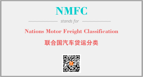 上述内容是“Nations Motor Freight Classification”作为“NMFC”的缩写,解释为“联合国汽车货运分类”时的信息,以及英文缩略词NMFC所代表的英文单词,其对应的中文拼音、详细解释以及在英文中的流行度和相关分类、应用领域及应用示例等。