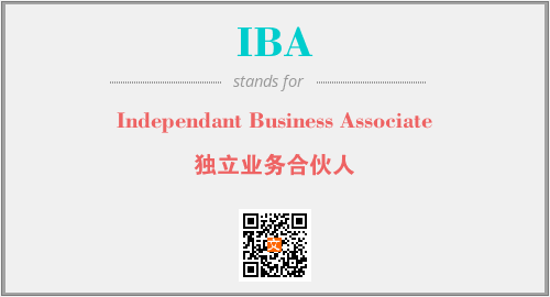 上述内容是“Independant Business Associate”作为“IBA”的缩写,解释为“独立业务合伙人”时的信息,以及英文缩略词IBA所代表的英文单词,其对应的中文拼音、详细解释以及在英文中的流行度和相关分类、应用领域及应用示例等。