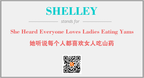 上述内容是“She Heard Everyone Loves Ladies Eating Yams”作为“SHELLEY”的缩写,解释为“她听说每个人都喜欢女人吃山药”时的信息,以及英文缩略词SHELLEY所代表的英文单词,其对应的中文拼音、详细解释以及在英文中的流行度和相关分类、应用领域及应用示例等。