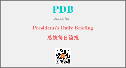 英文缩略词“PDB”经常作为“President\'s Daily Briefing”的英文缩写来使用,中文表示:“总统每日简报”。本文将详细介绍英文缩写词PDB所代表英文单词,其对应的中文拼音、详细解释以及在英语中的流行度。此外,还有关于缩略词PDB的分类、应用领域及相关应用示例等。