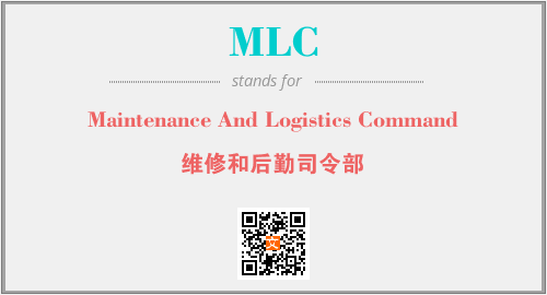 英文缩略词“MLC”经常作为“Maintenance And Logistics Command”的英文缩写来使用,中文表示:“维修和后勤司令部”。本文将详细介绍英文缩写词MLC所代表英文单词,其对应的中文拼音、详细解释以及在英语中的流行度。此外,还有关于缩略词MLC的分类、应用领域及相关应用示例等。