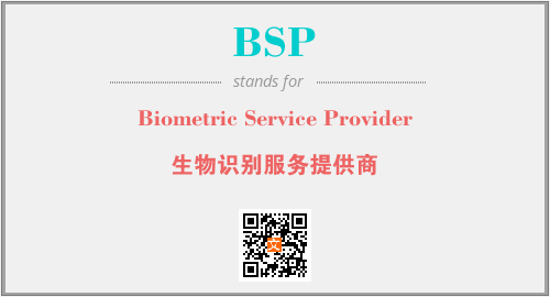 上述内容是“Biometric Service Provider”作为“BSP”的缩写,解释为“生物识别服务提供商”时的信息,以及英文缩略词BSP所代表的英文单词,其对应的中文拼音、详细解释以及在英文中的流行度和相关分类、应用领域及应用示例等。