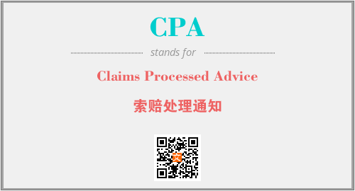 英文缩略词“CPA”经常作为“Claims Processed Advice”的英文缩写来使用,中文表示:“索赔处理通知”。本文将详细介绍英文缩写词CPA所代表英文单词,其对应的中文拼音、详细解释以及在英语中的流行度。此外,还有关于缩略词CPA的分类、应用领域及相关应用示例等。