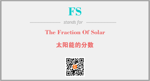 上述内容是“The Fraction Of Solar”作为“FS”的缩写,解释为“太阳能的分数”时的信息,以及英文缩略词FS所代表的英文单词,其对应的中文拼音、详细解释以及在英文中的流行度和相关分类、应用领域及应用示例等。