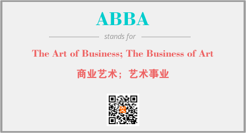 英文缩略词“ABBA”经常作为“The Art of Business; The Business of Art”的英文缩写来使用,中文表示:“商业艺术;艺术事业”。本文将详细介绍英文缩写词ABBA所代表英文单词,其对应的中文拼音、详细解释以及在英语中的流行度。此外,还有关于缩略词ABBA的分类、应用领域及相关应用示例等。