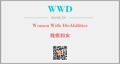 英文缩略词“WWD”经常作为“Women With DisAbilities”的英文缩写来使用,中文表示:“残疾妇女”。本文将详细介绍英文缩写词WWD所代表英文单词,其对应的中文拼音、详细解释以及在英语中的流行度。此外,还有关于缩略词WWD的分类、应用领域及相关应用示例等。