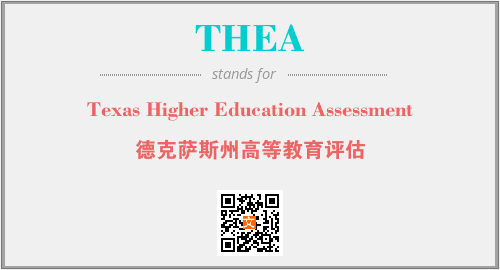 上述内容是“Texas Higher Education Assessment”作为“THEA”的缩写,解释为“德克萨斯州高等教育评估”时的信息,以及英文缩略词THEA所代表的英文单词,其对应的中文拼音、详细解释以及在英文中的流行度和相关分类、应用领域及应用示例等。