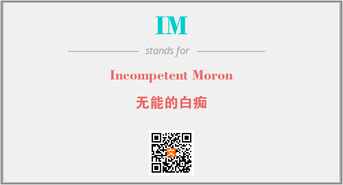 上述内容是“Incompetent Moron”作为“IM”的缩写,解释为“无能的白痴”时的信息,以及英文缩略词IM所代表的英文单词,其对应的中文拼音、详细解释以及在英文中的流行度和相关分类、应用领域及应用示例等。
